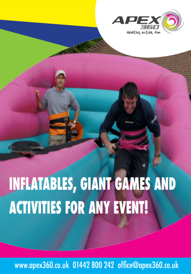 Apex is a leading Sports, Dance and Physical Activity provider based in and around the Hertfordshire and Middlesex areas. Before Covid, we were delivering around 150 inflatable events from x2 or 3 inflatables at an event up to x25!!! Check out a video on our You Tube channel that bring to life what we can offer -