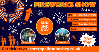 Join us for the Metropolitan’s hugely popular pyro-musical Fireworks Night in Bushey!