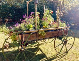 Need to make a business statement? Need something special for a garden design? We make and deliver, UK wide, vintage style haycarts to our own design, based on old haycarts and what they were used for. We use new iron, reclaimed iron, reclaimed wood and parts of reclaimed carts.