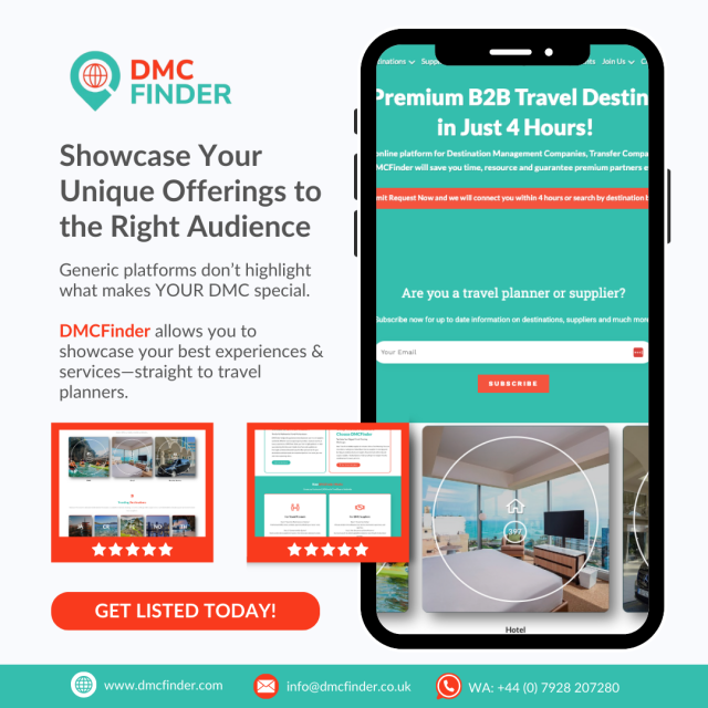 DMCFinder is a global B2B platform connecting event planners, travel professionals, and corporate buyers with trusted, verified Destination Management Companies (DMCs) across 100+ countries.