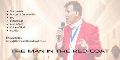 If you require a warm, friendly, humerous, but commanding event host who stands out from the crowd and runs events smoothly and to time, then look no further than The Man in the Red Coat. (Red Coat optional!!)