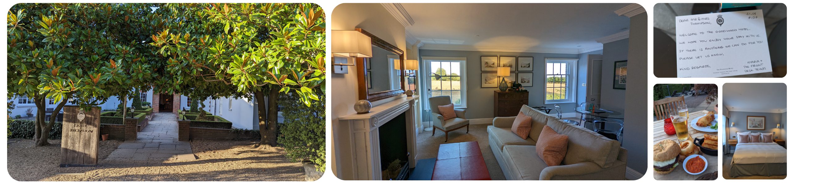 Free parking put the first smile on our faces, and the reception staff gave us our second. As we entered the beautiful old building, surrounded by lush greenery, we were greeted so kindly by the staff at the Goodwood Hotel - something so important, but so easy to get wrong. The reception team nailed it and after a quick, smiley and no-fuss check-in, we were in our room before we knew it.