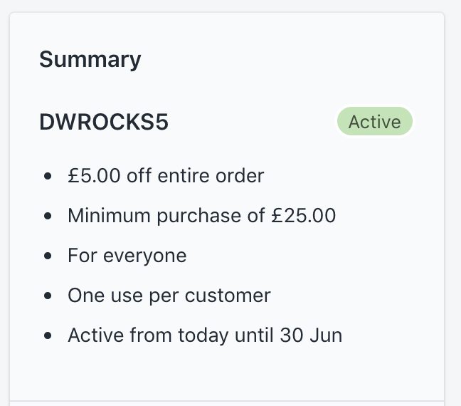 Claim £5 off your order (over £25) by using special Delegate Wranglers discount code 'DWROCKS5' at the checkout. Expires 30 June